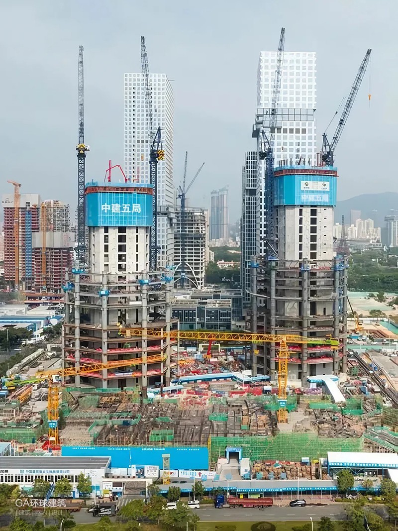 C塔被稱為“未來之塔”,位于深圳市南山區(qū)深圳灣超級總部基地的“十字雙軸”中心,總投資約165億元,占地面積3.6萬平方米,由高約395米和300米的兩座摩天樓共同組成的一座多維度“垂直都市”,呈“雙人起舞”的形體。