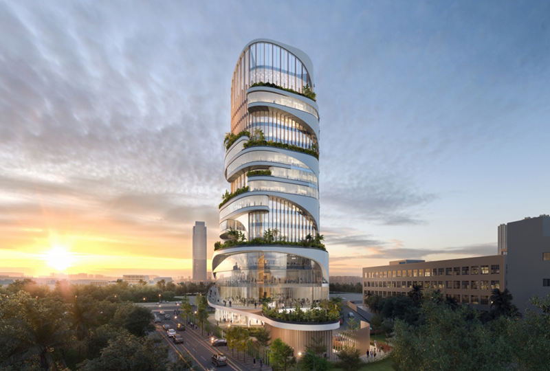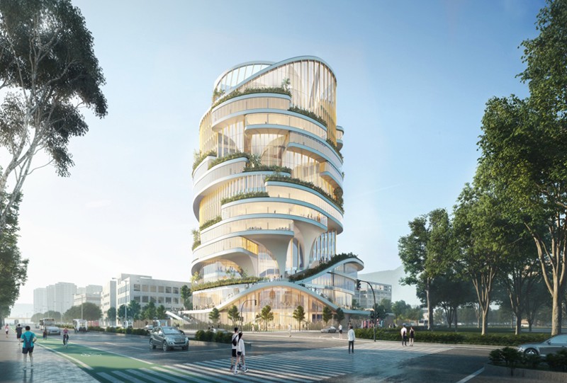 項目集辦公、公共商業(yè)復合空間、員工配套服務中心等多種功能于一體,在設計理念上,大廈巧妙融入了福州特色地域文化,以“神奇榕樹屋”為設計藍本,將福州市樹“榕樹”的骨骼脈絡作為核心筒的設計靈感,呼應了榕樹粗大的樹干。建筑平面則類似榕樹的分支,眾多戶外露臺形似榕樹的巨大樹冠,營造出一種通透、靈動的視覺感受。