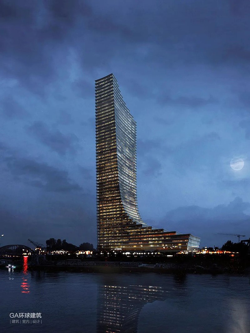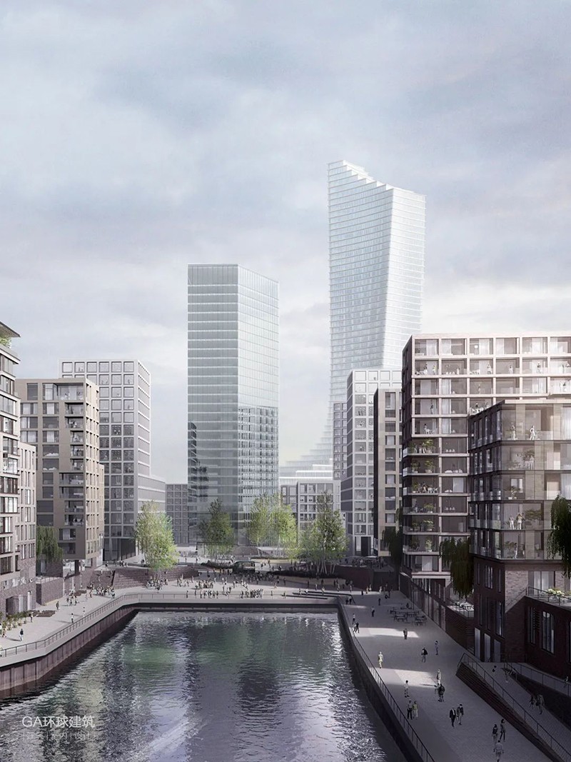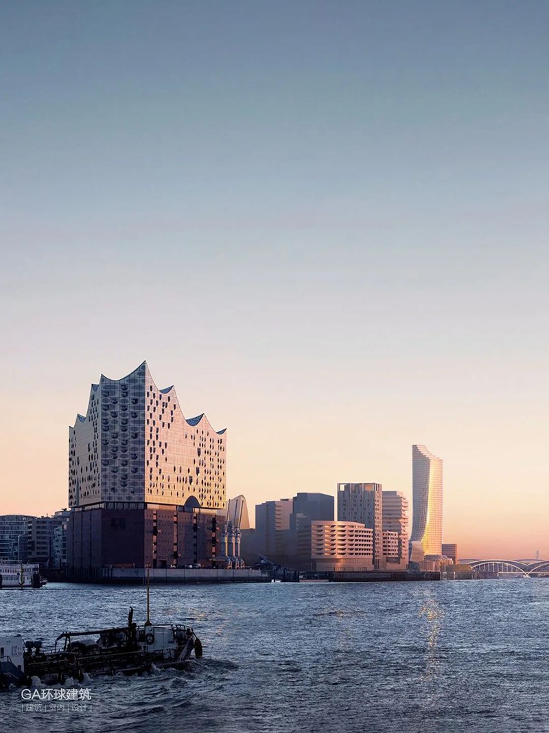 塔樓坐落于漢堡港城河畔,與易北愛樂廳遙相呼應(yīng),集辦公、零售、酒店及公共空間于一體。