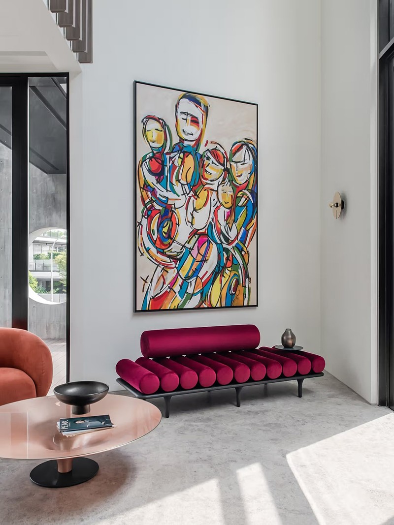 簡潔的家具與藝術(shù)元素相得益彰,使每個空間既獨具個性,又與整體氛圍相協(xié)調(diào),為居住者提供私密而愜意的休憩空間。