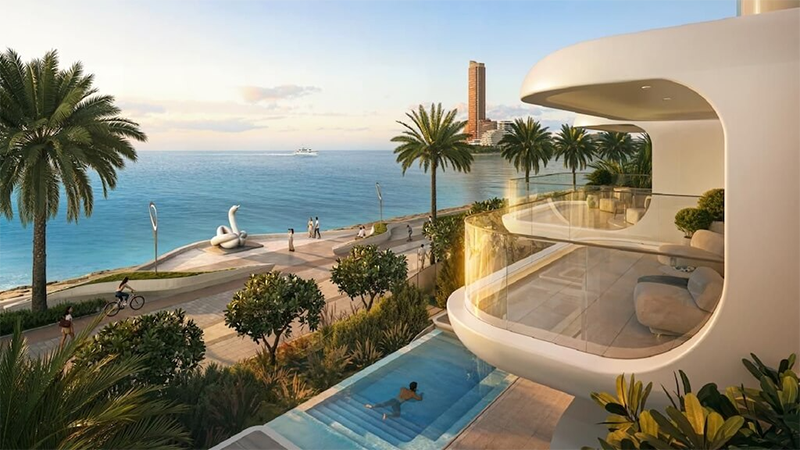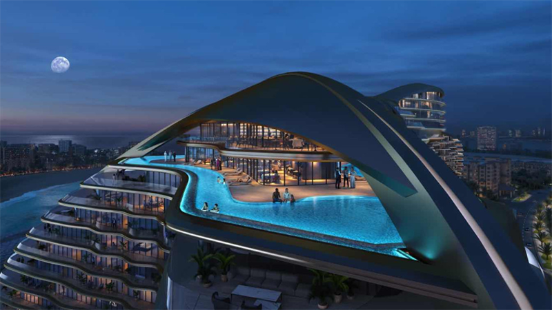 住宅部分包含950套精致住宅,涵蓋一至四居室公寓、復式公寓、頂層公寓及濱海別墅,其中75%以上戶型享有無遮擋的壯闊海景。住宅塔樓所處的42,000平方米基地內,規劃有園景花園、庭院、泳池、屋頂無邊泳池、360°觀景餐廳及配套的海灘俱樂部,為住戶提供一站式高端濱海生活體驗。