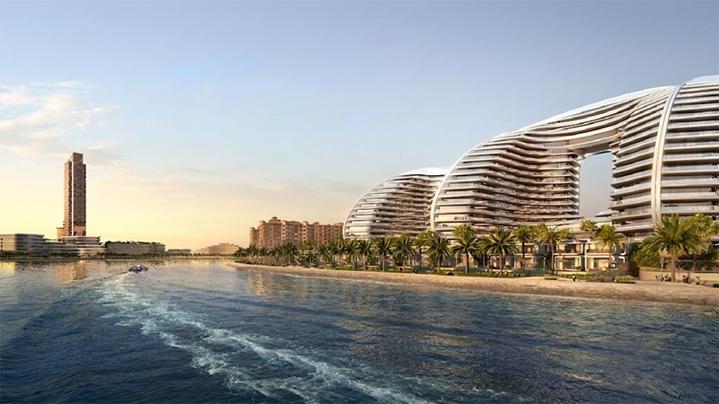 項目位于阿聯酋拉斯?,數?Al Marjan 島,項目占地達128,000平方米,以一座20層雕塑感住宅塔樓為核心,沿阿拉伯海金色海岸線延展,將建筑美學與高端濱海生活完美融合。