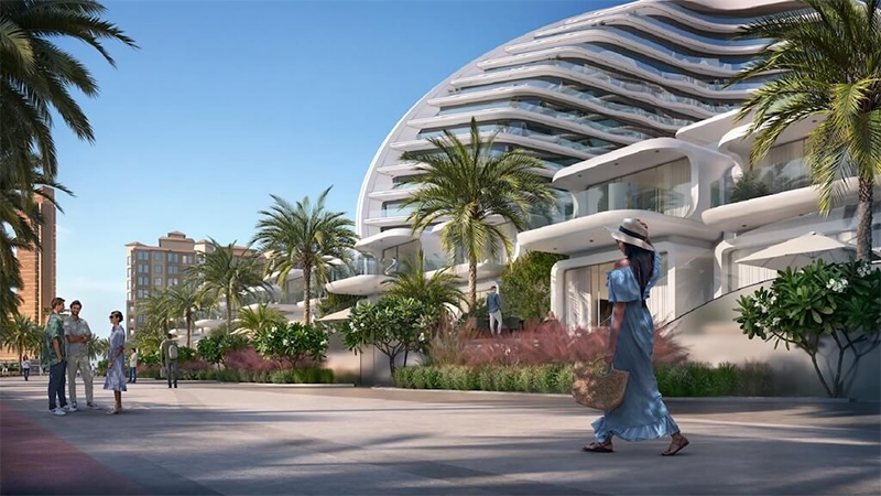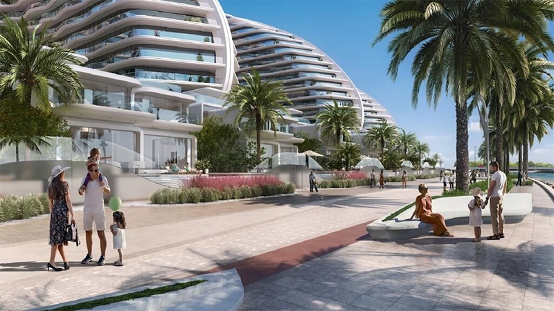 Oystra 同時融合商業與休閑功能,設置有購物長廊、餐飲區和健身娛樂中心。整個開發項目與 Al Marjan 島的濱海長廊無縫銜接,綠樹成蔭、海風拂面的步行系統讓居民可輕松通達島嶼各處。此外,項目引入海水冷卻系統與隔熱雙層外立面,有效應對高溫氣候,降低運營能源負荷。